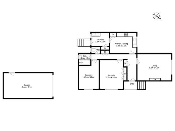 The two bedroom semi-attached home includes two generous sized bedrooms, a large living room, kitchen, bathroom and laundry.